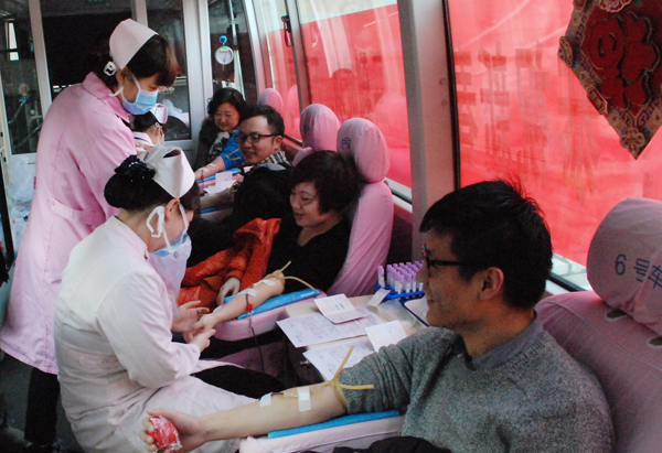 ?? ?2月19日,公司响应朝阳街道号召,组织员工前往长沙铁路文化宫献血车进行无偿献血。22名员工踊跃报名参与,其中不乏女同志和老同志的身影。他们纷纷表示,能为缓解长沙血库供应紧张压力尽自己一份心,能为公司履行社会责任出一份力,让他们感到幸福和光荣。 (张久华)
