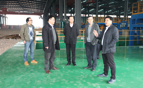 ??? 谢立三(左四)、彭福喜(左三)、陈敏辉(左一)在张端清副总 (左五)陪同下考察高星物流园加工中心