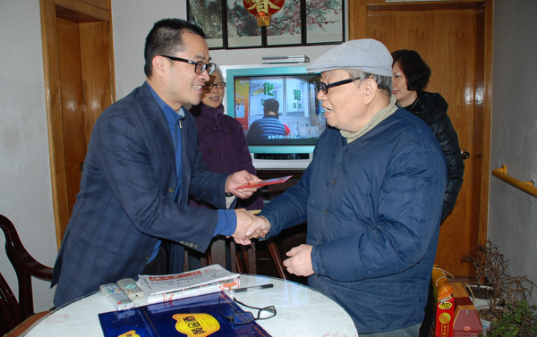 ??? 2月10日,受袁仁军董事长的委托,公司党委副书记、副董事长姚俊率办公室和人力资源部相关人员,在公司总经理助理毛治平陪同下,到省军区医院看望慰问了三维离休干部杨福才。之后,又去看望了原湖南省化工公司党委书记谢彦宗。11日-12日,专程前往衡阳、怀化等地,看望慰问湘南物流和原南华公司的部分离退休老同志及生活困难职工。在衡阳,姚副书记一行到湘南物流离休干部朱彩和、罗必武家中走访慰问,并向在外地的离休干部李保安电话拜年祝福。在怀化,到原南华公司离休老干部王震东家中和退休老同志集中居住的南华公司宿舍慰问,专程到怀化市中医院看望重病在身的袁培林,送去困难补助金和慰问品,并看望了南华公司离退休管理小组成员。