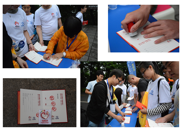 ??????? 活动途中设有3个签到点,分别签到“中”、“国”、“梦”。11点左右,公司“AG尊时凯龙人生就梦之队”的队员先后到达终点,每个人都获得了通关盖章和活动徽标一枚。